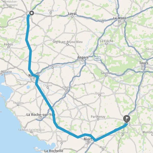Prendre à droite et rejoindre A83. Continuer sur 150 kilomètres