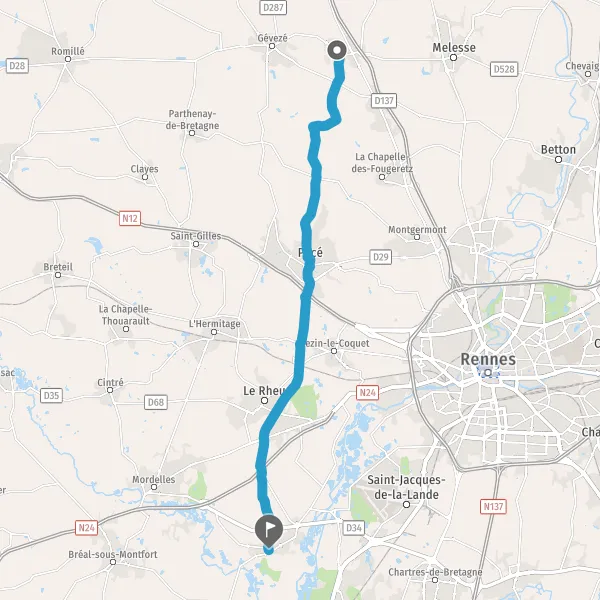 Tourner légèrement à droite sur Route de Pacé et continuer sur 450 mètres