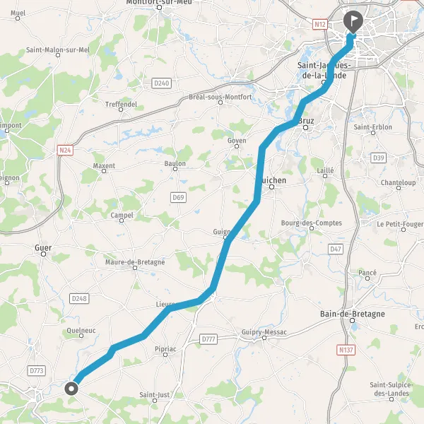 Tourner à droite sur D352 D50 (Rue de la Croix Bouëxic) et continuer sur 4,7 kilomètres