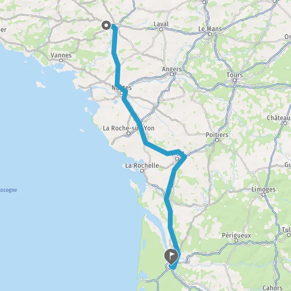 Prendre à droite et rejoindre A83. Continuer sur 150 kilomètres