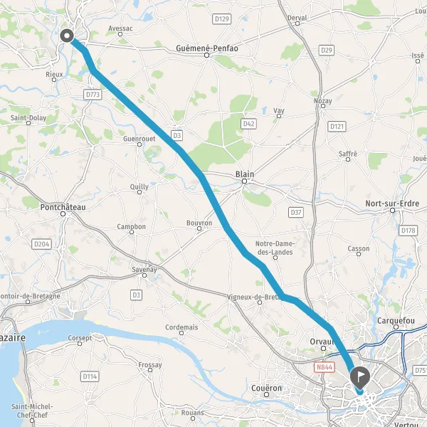 Au rond-point, prendre la 2ème sortie sur D164 (Route de Nantes) et continuer sur 3,1 kilomètres