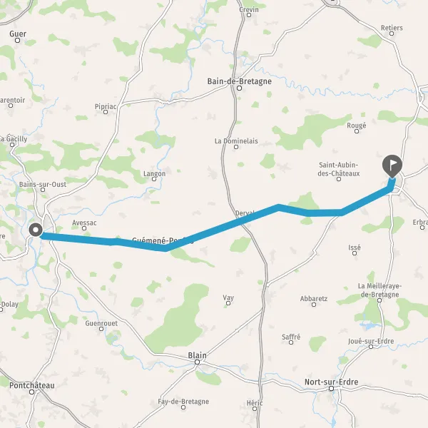 Au rond-point, prendre la 2ème sortie sur D775 (Rue de Châteaubriant) et continuer sur 16 kilomètres