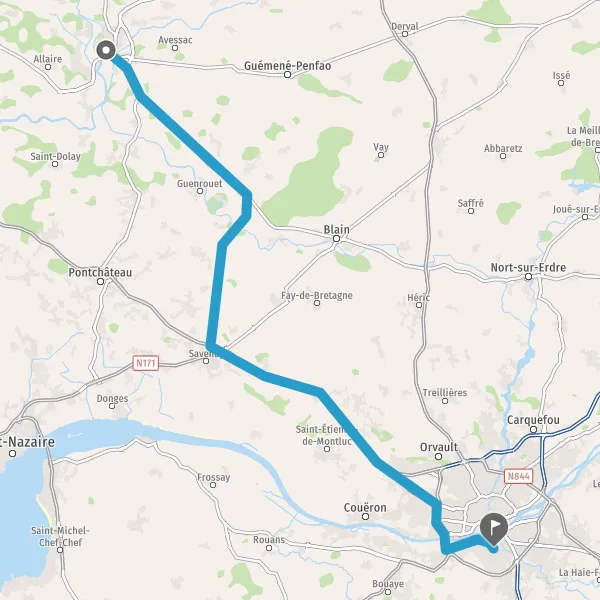 Au rond-point, prendre la 2ème sortie sur D164 (Route de Nantes) et continuer sur 3,1 kilomètres
