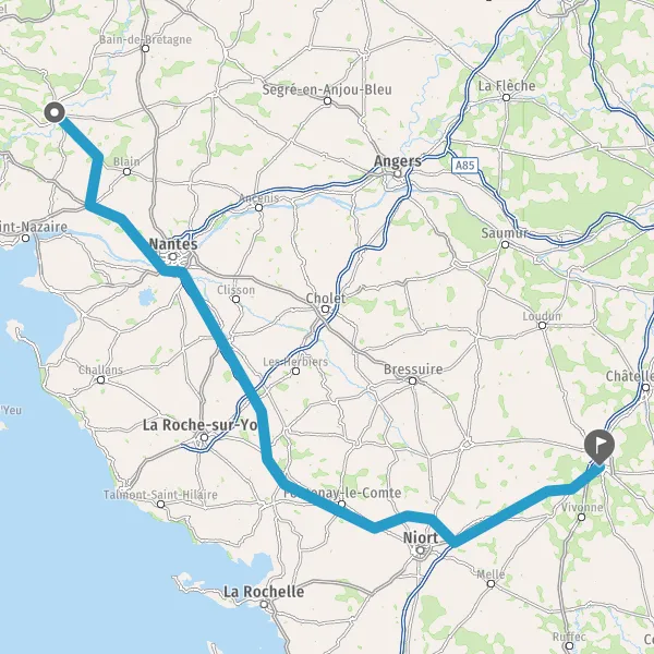 Prendre à droite et rejoindre A83. Continuer sur 150 kilomètres