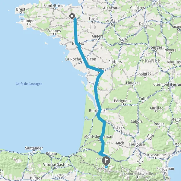 Prendre à droite et rejoindre A83. Continuer sur 150 kilomètres