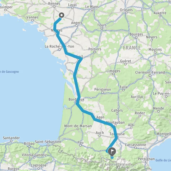 Prendre à droite et rejoindre A83. Continuer sur 150 kilomètres