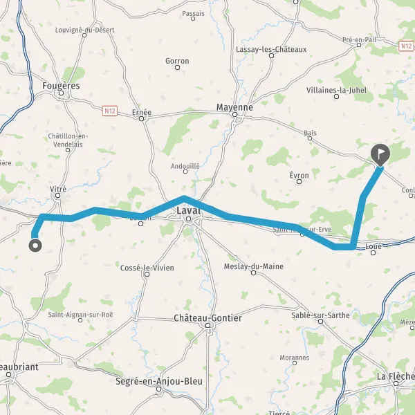 Continuer A81 E50 sur 65 kilomètres