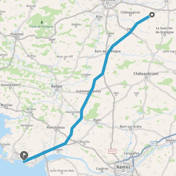 Tourner à gauche sur D3 (Rue de Savenay) et continuer sur 8,8 kilomètres