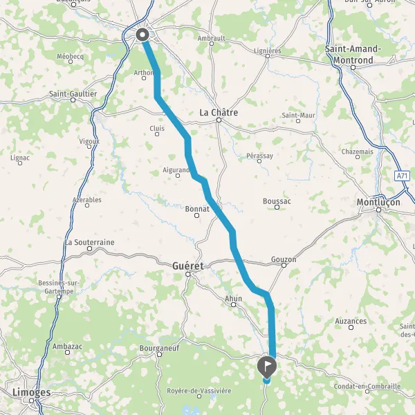 Tourner à droite sur D990 (Route de La Châtre) et continuer sur 5,6 kilomètres