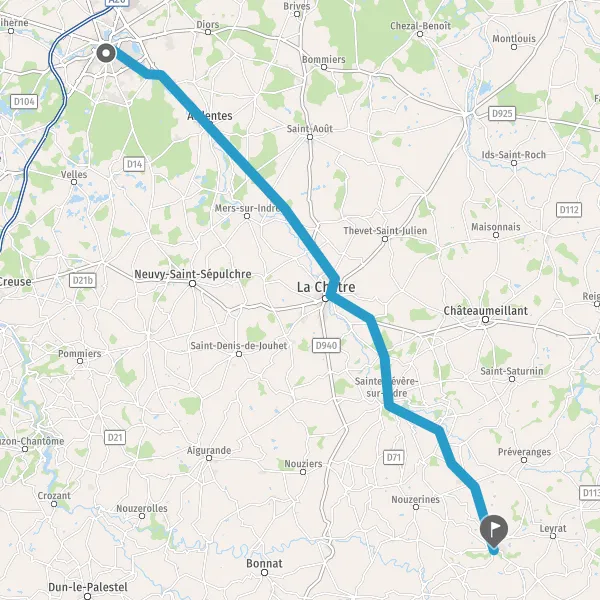 Au rond-point, prendre la 1ère sortie sur D943 (Avenue de la Châtre) et continuer sur 2,5 kilomètres
