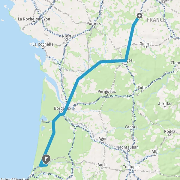 Prendre à droite et rejoindre A63. Continuer sur 139 kilomètres