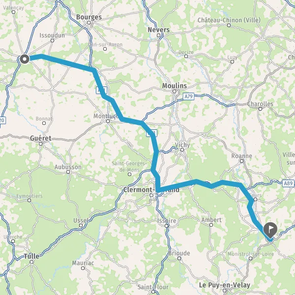 Prendre à droite et rejoindre A89 E70. Continuer sur 84 kilomètres