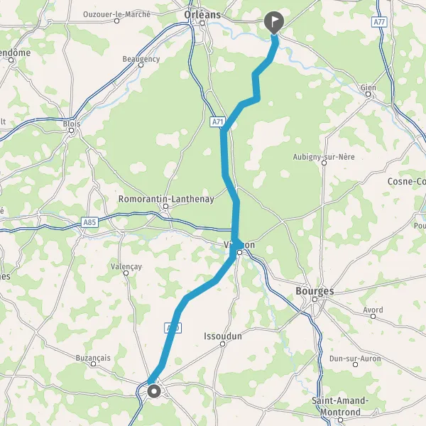 Prendre à gauche et rejoindre A71 E9. Continuer sur 40 kilomètres