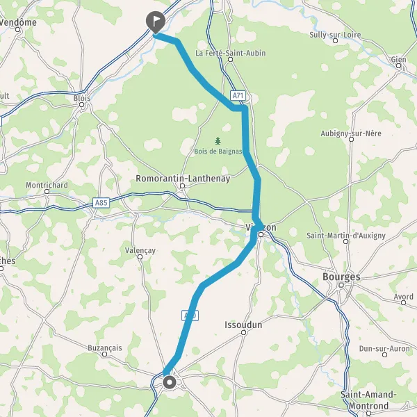 Prendre à gauche et rejoindre A71 E9. Continuer sur 40 kilomètres