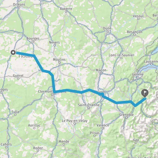 Prendre à droite et rejoindre A89 E70. Continuer sur 84 kilomètres