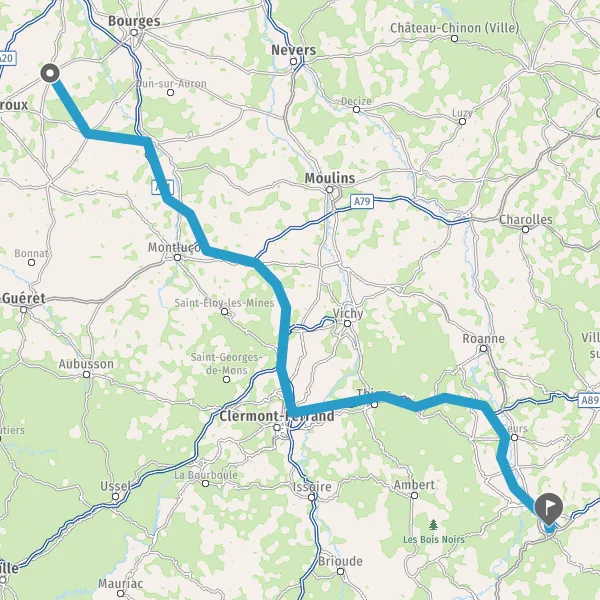 Prendre à droite et rejoindre A89 E70. Continuer sur 84 kilomètres