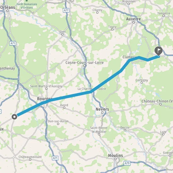 Tourner légèrement à droite sur N151 (Route de la Charité-Sur-Loire) et continuer sur 31 kilomètres