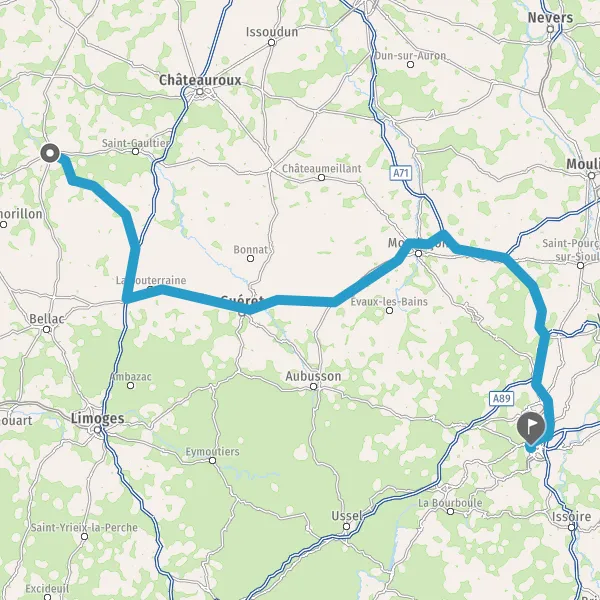 Prendre à droite et rejoindre A71. Continuer sur 89 kilomètres