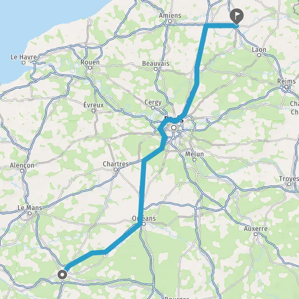 Prendre à droite et rejoindre A10 E5 E60. Continuer sur 107 kilomètres