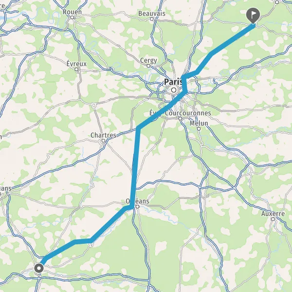 Prendre à droite et rejoindre A10 E5 E60. Continuer sur 107 kilomètres
