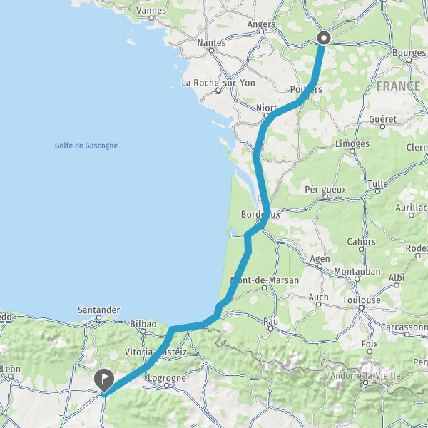 Prendre à droite et rejoindre A63. Continuer sur 205 kilomètres