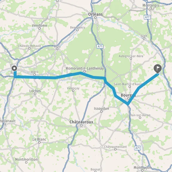 Prendre à droite et rejoindre A71. Continuer sur 5,5 kilomètres
