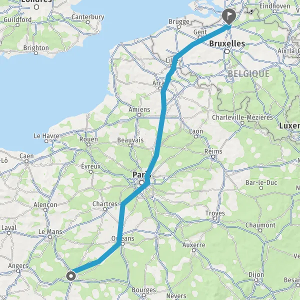 Prendre à droite et rejoindre A10 E5 E60. Continuer sur 107 kilomètres