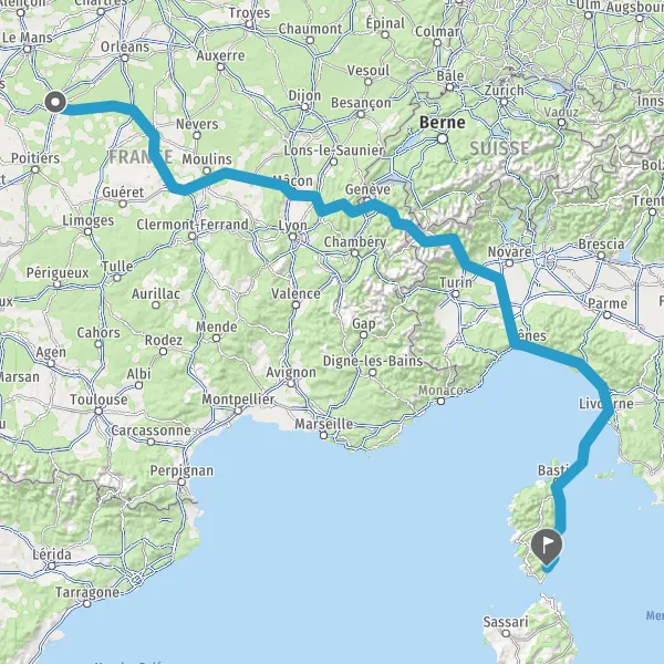 Au rond-point, prendre la 2ème sortie sur T10 (Avenue Saint-Alexandre-Sauli) et continuer sur 15 kilomètres