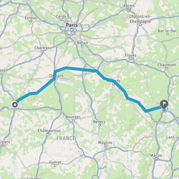 | Distance en voiture | 372 km à 434 km |