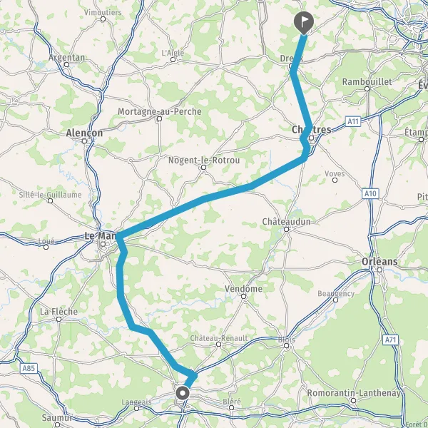 Prendre à droite et rejoindre A11. Continuer sur 94 kilomètres