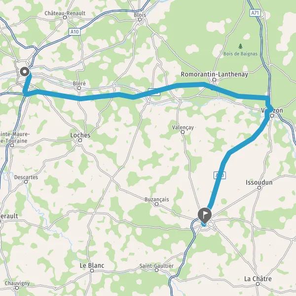 Au rond-point, prendre la 2ème sortie sur D943 (Route de Châteauroux) et continuer sur 21 kilomètres