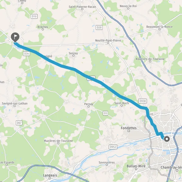 Au rond-point, prendre la 1ère sortie sur D959 (Route de Château-la-Vallière) et continuer sur 19 kilomètres