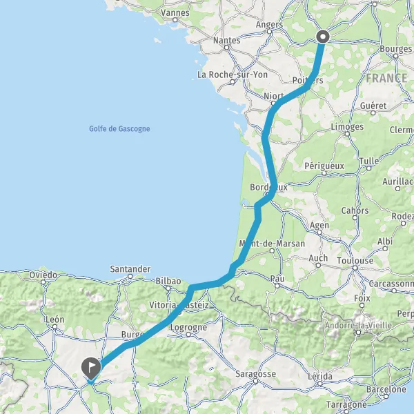 Prendre à droite et rejoindre A63. Continuer sur 205 kilomètres