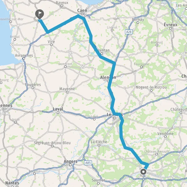 Prendre à droite et rejoindre A28 E502. Continuer sur 85 kilomètres
