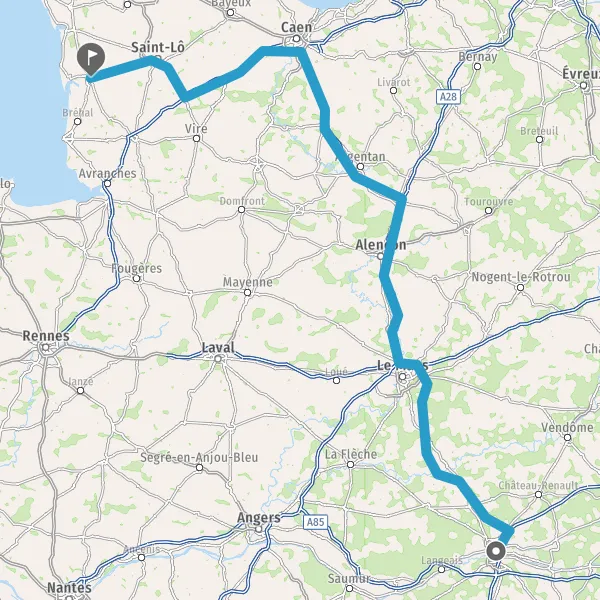 Prendre à droite et rejoindre A28 E502. Continuer sur 85 kilomètres
