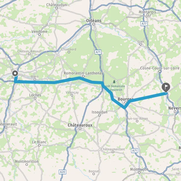 Tourner légèrement à droite sur N151 (Route de la Charité-Sur-Loire) et continuer sur 31 kilomètres