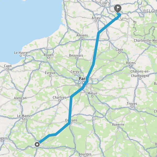 Prendre à droite et rejoindre A10 E5 E60. Continuer sur 107 kilomètres