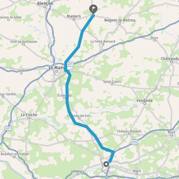 Tourner légèrement à droite sur D301 (Route du Mans) et continuer sur 10 kilomètres