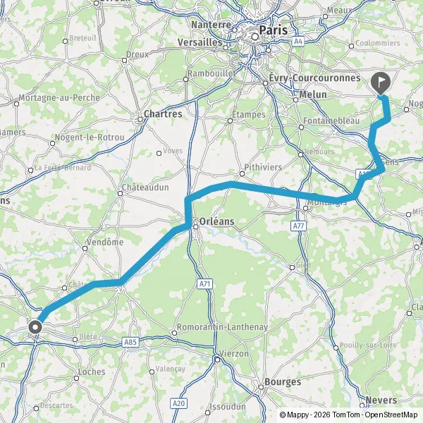 Prendre à droite et rejoindre A19 E60. Continuer sur 99 kilomètres