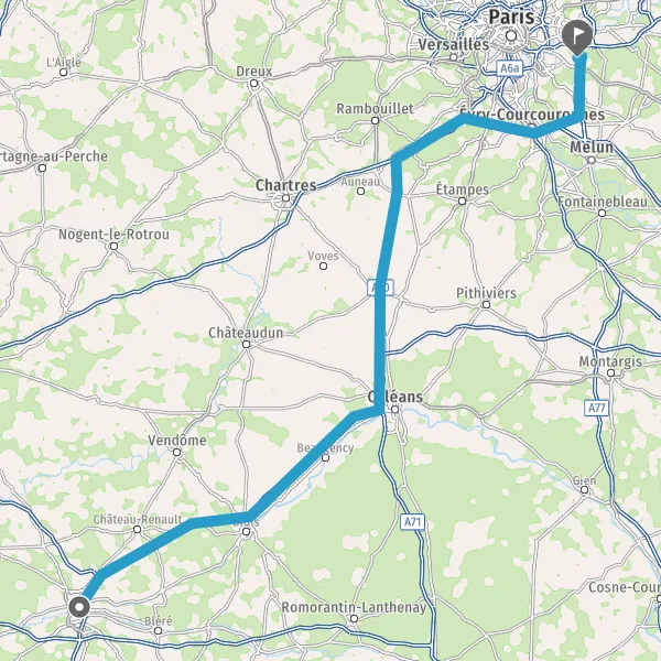 Prendre à droite et rejoindre A10 E5 E60. Continuer sur 107 kilomètres