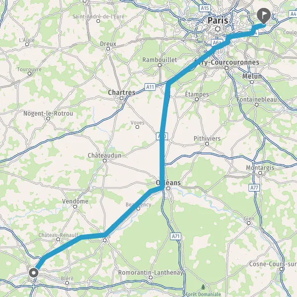 | Distance en voiture | 255 km à 268 km |