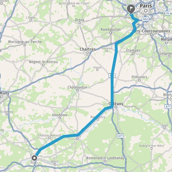 Prendre à droite et rejoindre A10 E5 E60. Continuer sur 107 kilomètres