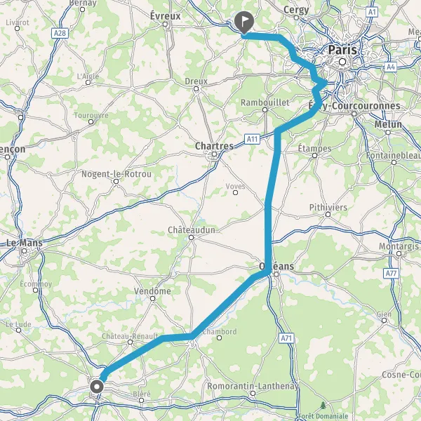 Prendre à droite et rejoindre A10 E5 E60. Continuer sur 107 kilomètres