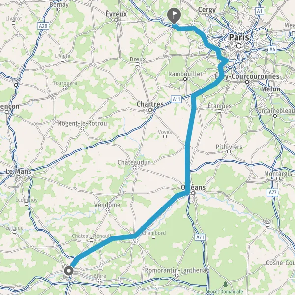 Prendre à droite et rejoindre A10 E5 E60. Continuer sur 107 kilomètres