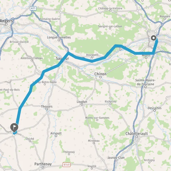 Tourner à gauche sur D69 (Route de Doué) et continuer sur 22 kilomètres