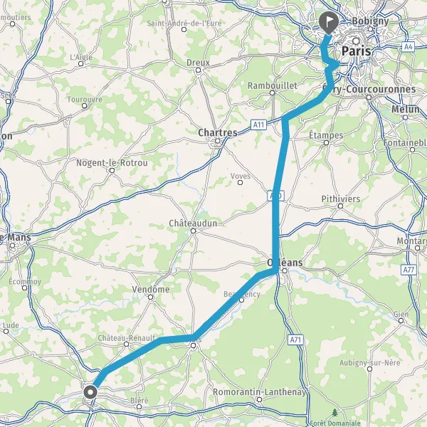 Prendre à droite et rejoindre A10 E5 E60. Continuer sur 107 kilomètres