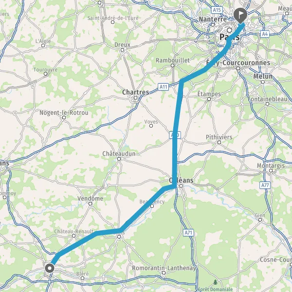 Prendre à droite et rejoindre A10 E5 E60. Continuer sur 107 kilomètres
