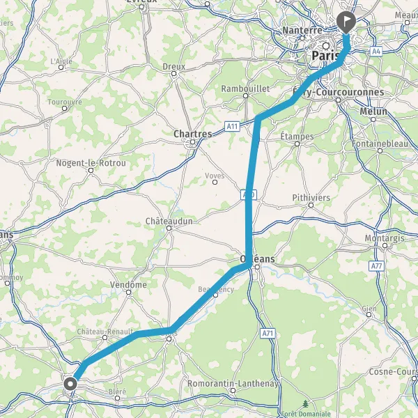 Prendre à droite et rejoindre A10 E5 E60. Continuer sur 107 kilomètres