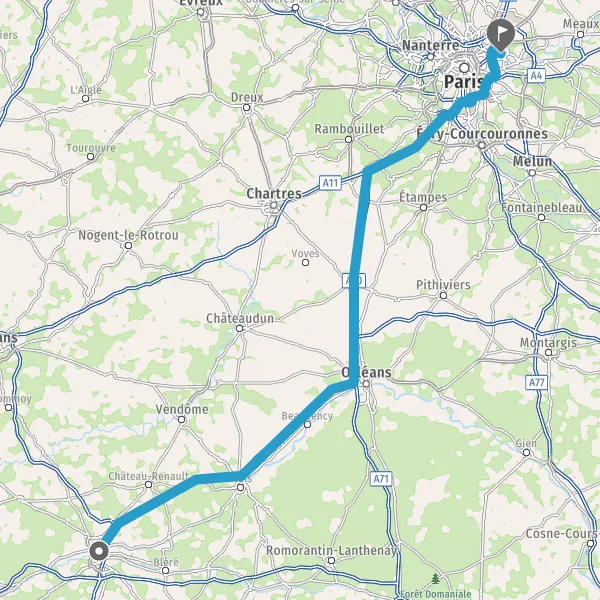 Prendre à droite et rejoindre A10 E5 E60. Continuer sur 107 kilomètres