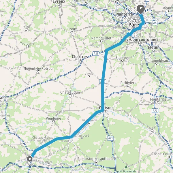 Prendre à droite et rejoindre A10 E5 E60. Continuer sur 107 kilomètres